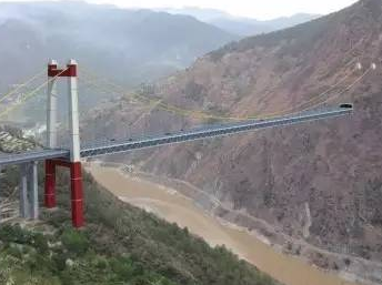 該大橋整體設計創新采用了獨塔單跨地錨式懸索橋結構,所設計的766米跨徑, 已屬目前世界上此類結構式橋梁中的最大跨徑,滾軸式復合散索鞍結構在國內外大跨懸索橋上也是第一次采用。